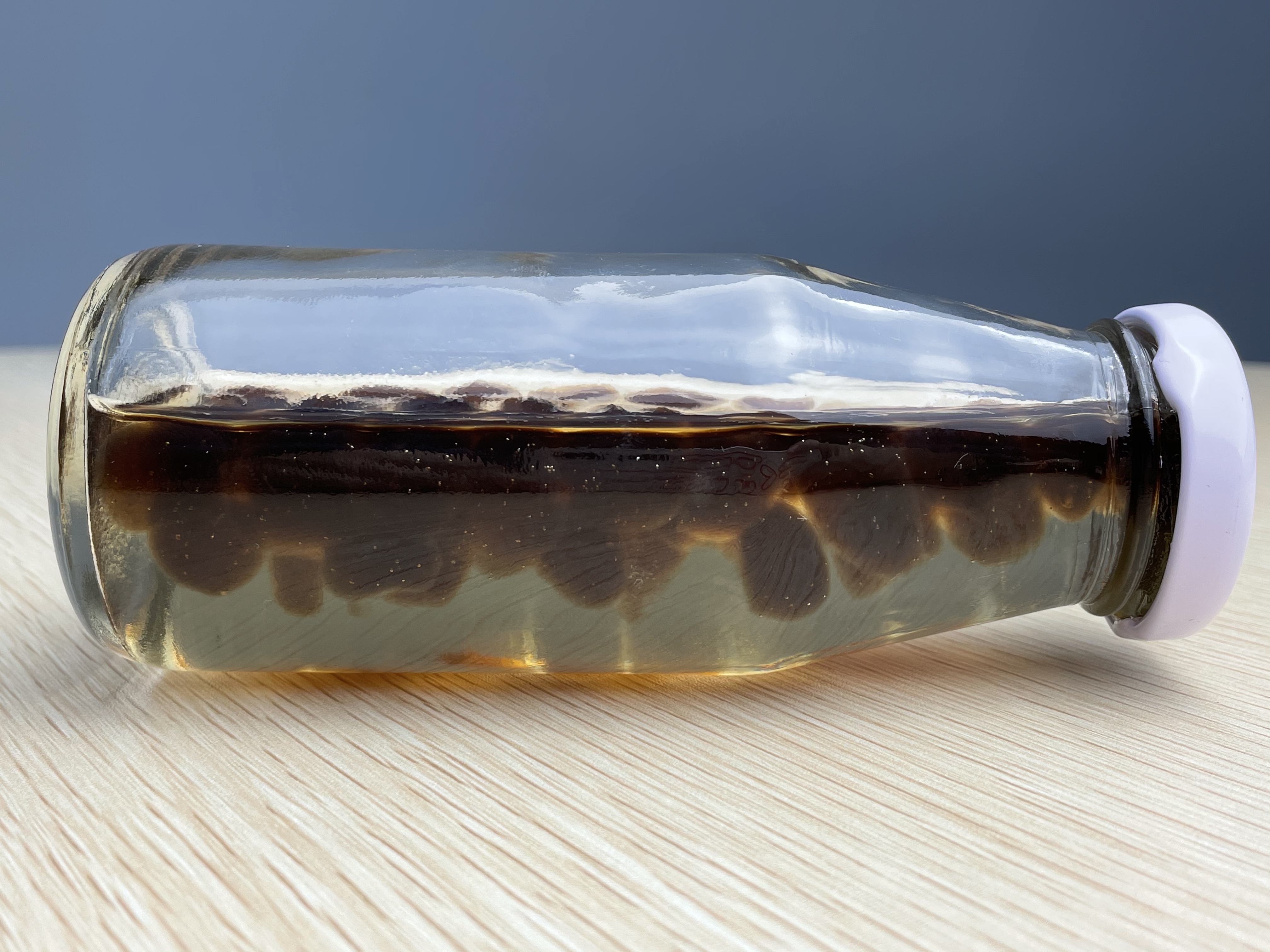 2)所制晶冻颗粒具有高温不变形不缩水,口感柔韧有嚼劲等特点。
