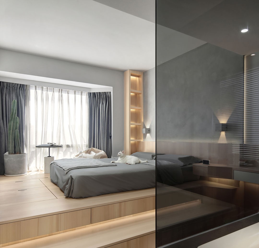 踏踏高度和飄窗結合,延伸空間感。不同的層次,滿足不同的功能需求。