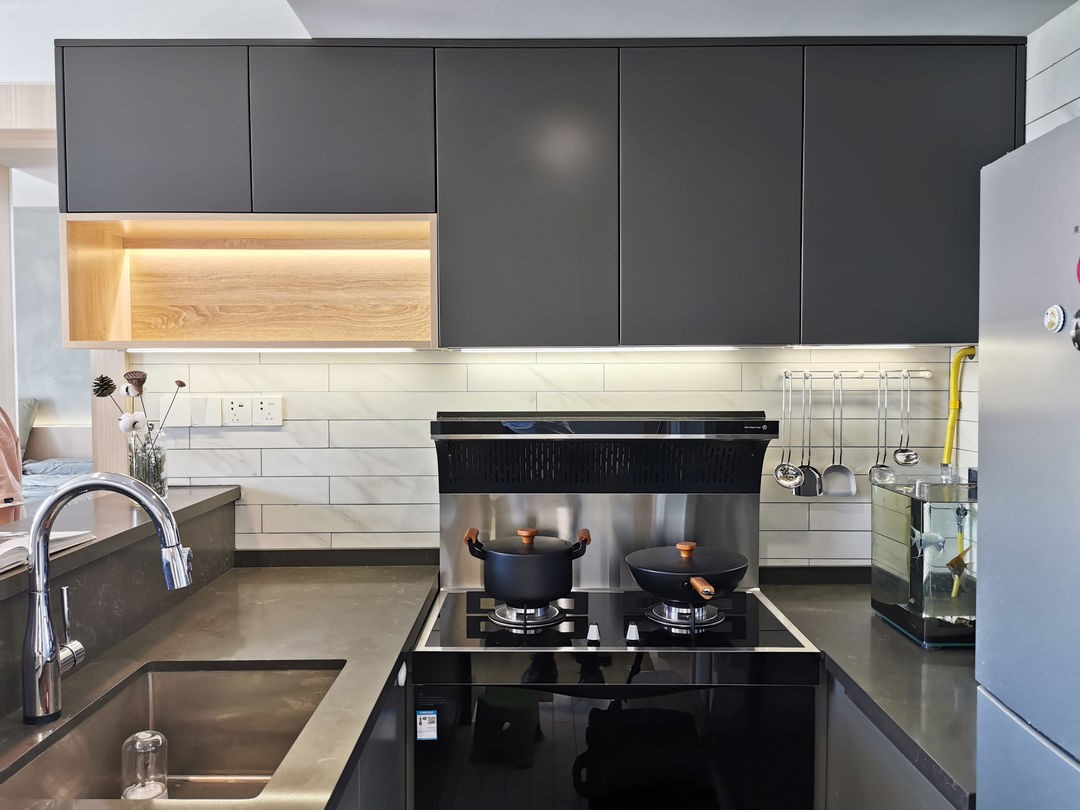 櫥柜吊柜手掃感應燈,方便開關,同時提升臺面照度。
