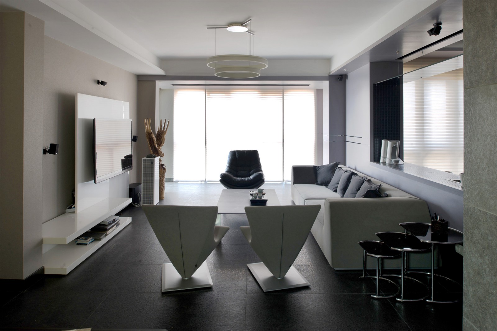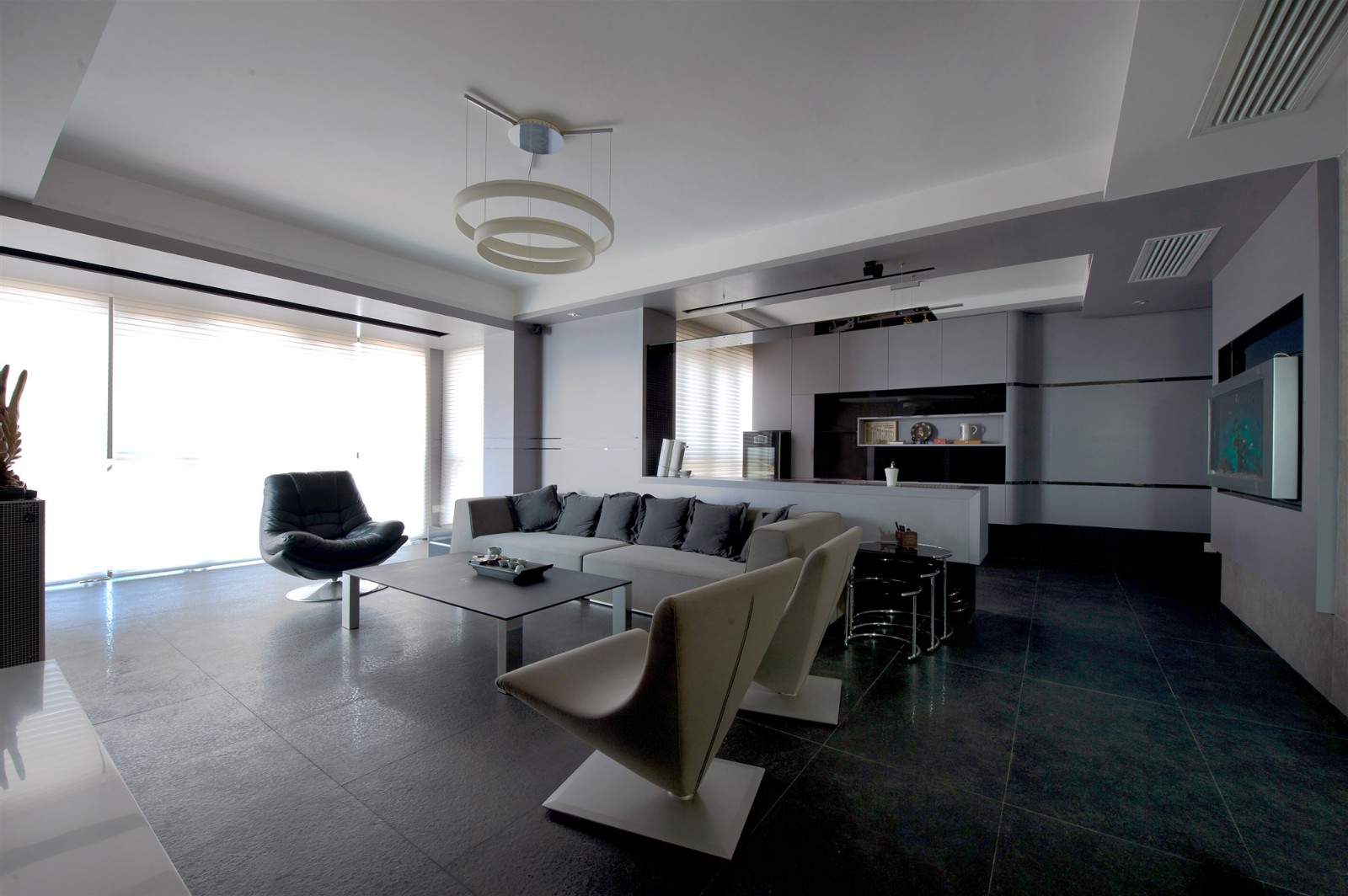 客廳以黑白灰的融合為格調(diào)