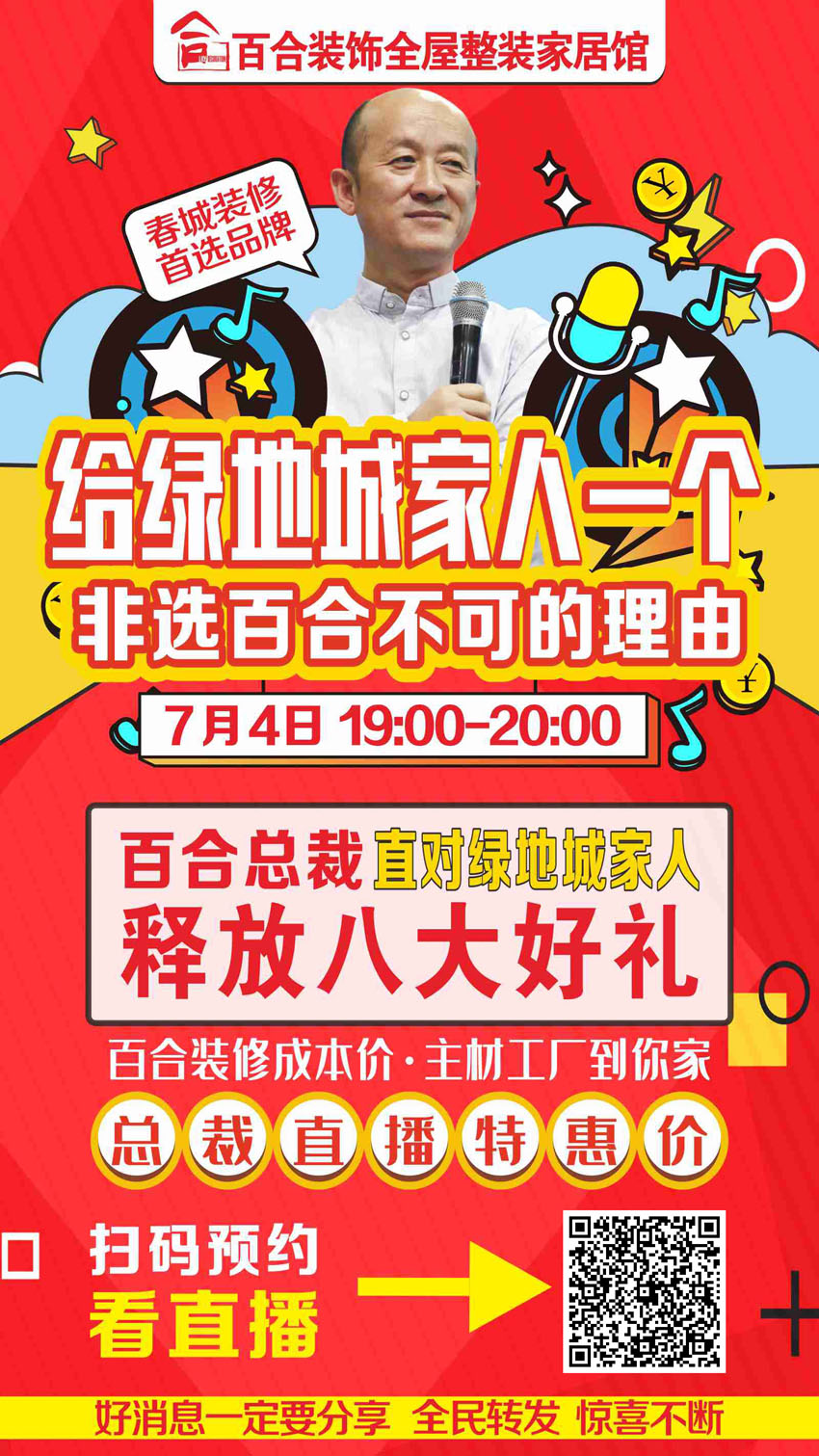 7月4號(hào)百合裝飾 總裁直播 綠地城小區(qū)專場(chǎng)福利團(tuán)購(gòu)活動(dòng)!