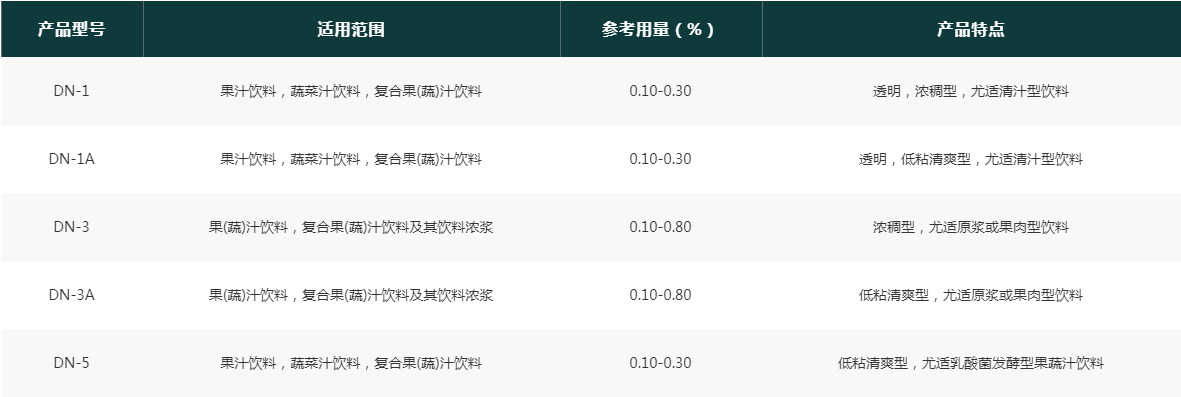 | 产品型号 | 适用范围 | 参考用量(%) | 产品特点 |